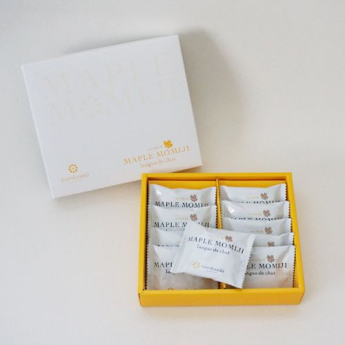 サクッとしたクッキーでミルキーなホワイトチョコをサンドしました。 サクッとしたうす~いクッキーでミルキーなホワイトチョコをサンドしたラングドシャです。ほろりとした口溶けのよい食感とメープルの甘さがお口に広がります。