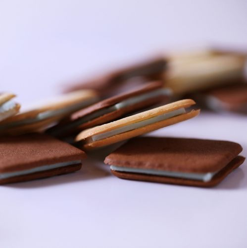 北見産ハッカのさわやかな香りがスーッとひろがる 北海道産小麦粉を使用し、「ハッカの街」として栄えた北見産和種ハッカ油を生地に練り込んでサクサク食感に仕上げチョコをサンドしました。