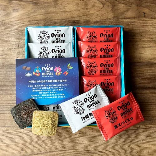 ブリゼとはフランス料理やフランス菓子で使われるタルト生地の一種で、サクサクとした食感が特徴的です。ピパーツや島唐辛子が香るスパイシーでクセになる「島スパイス味」と、黒糖と塩のやさしい甘さが広がる「沖縄黒糖味」の2種類が楽しめるアソートセットになっています。