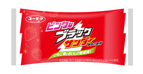 北海道いちごと北海道ミルクが絶妙にマッチ。甘酸っぱいいちごとコク深いミルクで北海道ならではの味わいがしっかり楽しめます。ブラックサンダーらしい「ザクザク感」を生み出すビスケットに加え、いちごチップを配合。甘酸っぱいいちごがアクセントの商品です。