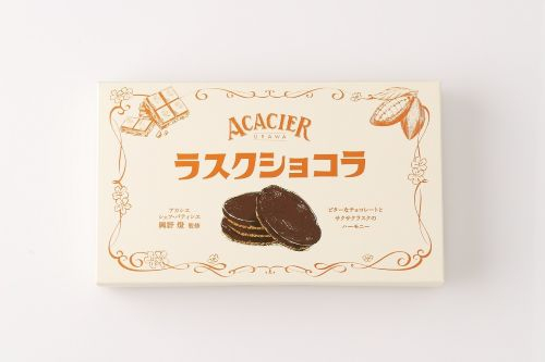 地元埼玉・浦和だけでなく遠方からもファンが訪れる人気店「アカシエ」のシェフ・パティシエ興野燈氏が監修した初の土産菓子となる新商品。口溶けのよいビターなチョコレートと、サクサク食感のラスクが楽しめます。