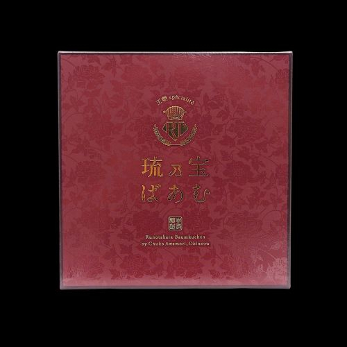 沖縄、忠孝酒造の特別な酵母と製法で作られたバニラの香りの広がる“忠孝 The Vanilla14年古酒”を使い、しっとりと上品な味わいのバウムをお楽しみいただけます。