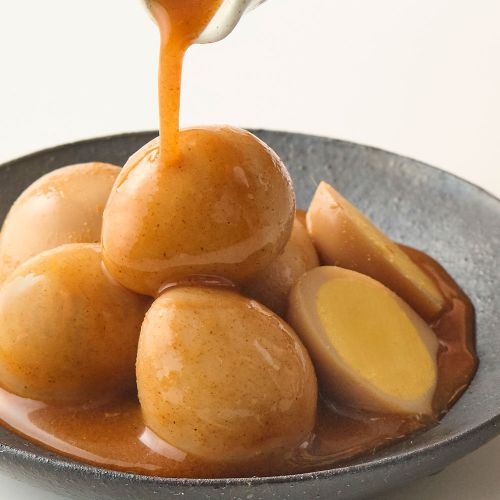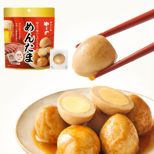 ピリッと旨み深い明太子風味のたれで味付けしたうずらのたまご♪ 国産うずらの卵を明太子風味のたれに漬け込み、しっとりと味付け、柔らかく仕上げました。ピリッとした辛さと旨み深い明太子風味でお酒のおつまみにぴったりです。