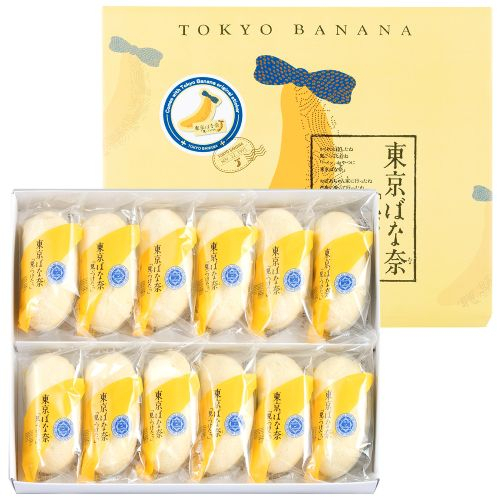 東京みやげの大定番 なめらかなバナナカスタードクリームたっぷりの、しっとり柔らかなスポンジケーキです。おいしさを大切に、本物のバナナを丁寧に裏ごししたバナナピューレからお作りしました。オリジナルステッカー1枚付きです。