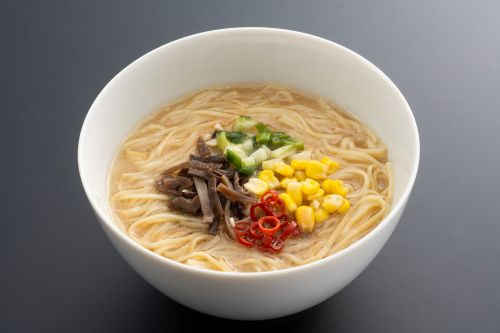 2種類の米味噌、2種類の醤油でコクと奥深さを出したベースに、練りごまを加えることでまろやかさを合わせたスープを開発。さらに、にんにく、玉ねぎ、生姜の食欲をそそる風味に、昆布、椎茸の旨味を効かせ、動物性原料不使用ながら満足感のある一杯に仕上げました。
